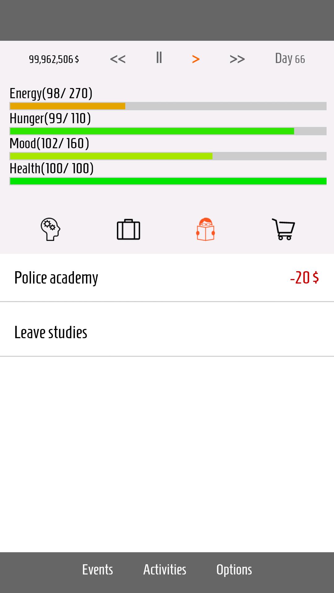 Real Life simulator. Start from the lowest end with your character and get to the top. Take care of your states, energy, hunger, mood and health. You'll have to survive the different circumstances that will be created throughout the game. Choose from different professions, activities and start your career from scratch. What will you be? maybe a doctor or lawyer? or maybe you open your own restaurant ?. You can even get a president and perhaps the Martian soil tread. Who knows. Experience life of virtual life