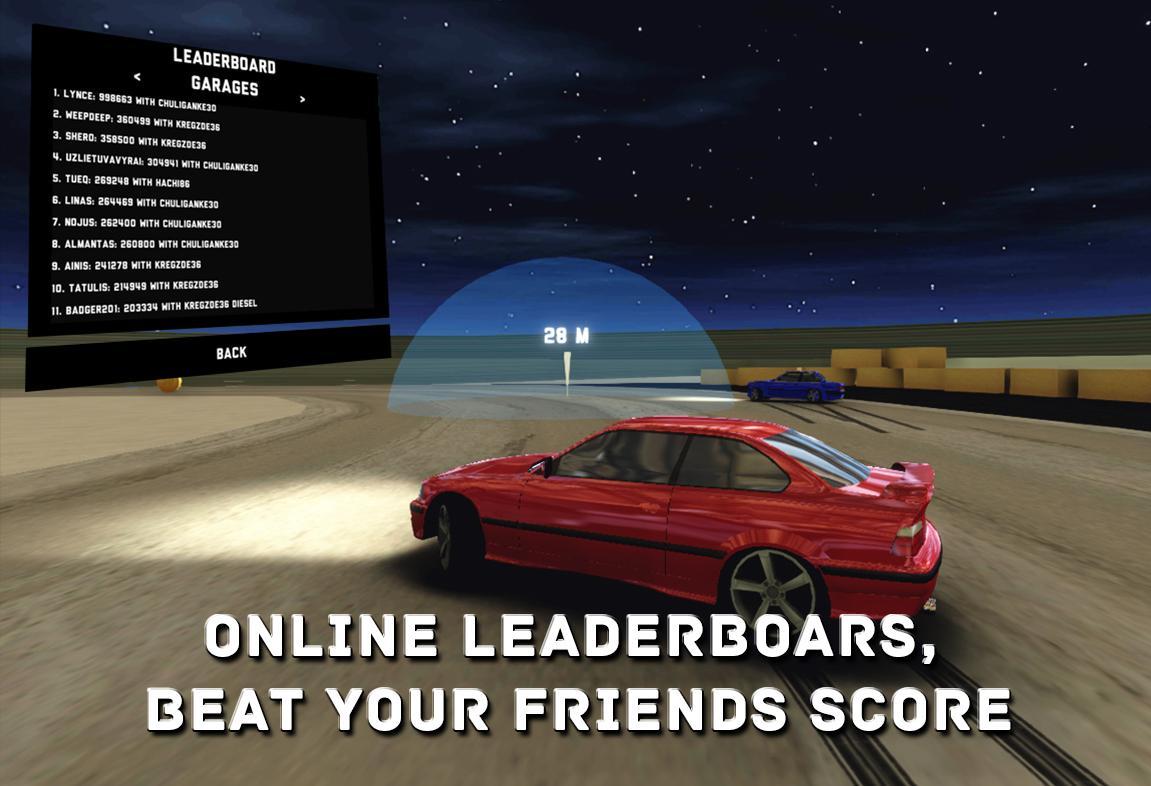 Realistic drift game with perfectly developed physics and graphics. Perfectly recreated 6 different sports cars with different performance. Performance of the car is affected not only by speed/accelaretion/handling settings, but also by fuel type.