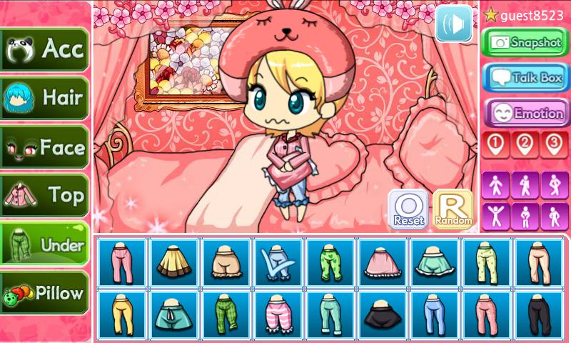 The beautifully decorated with a variety of outfits games.(Pajamas)