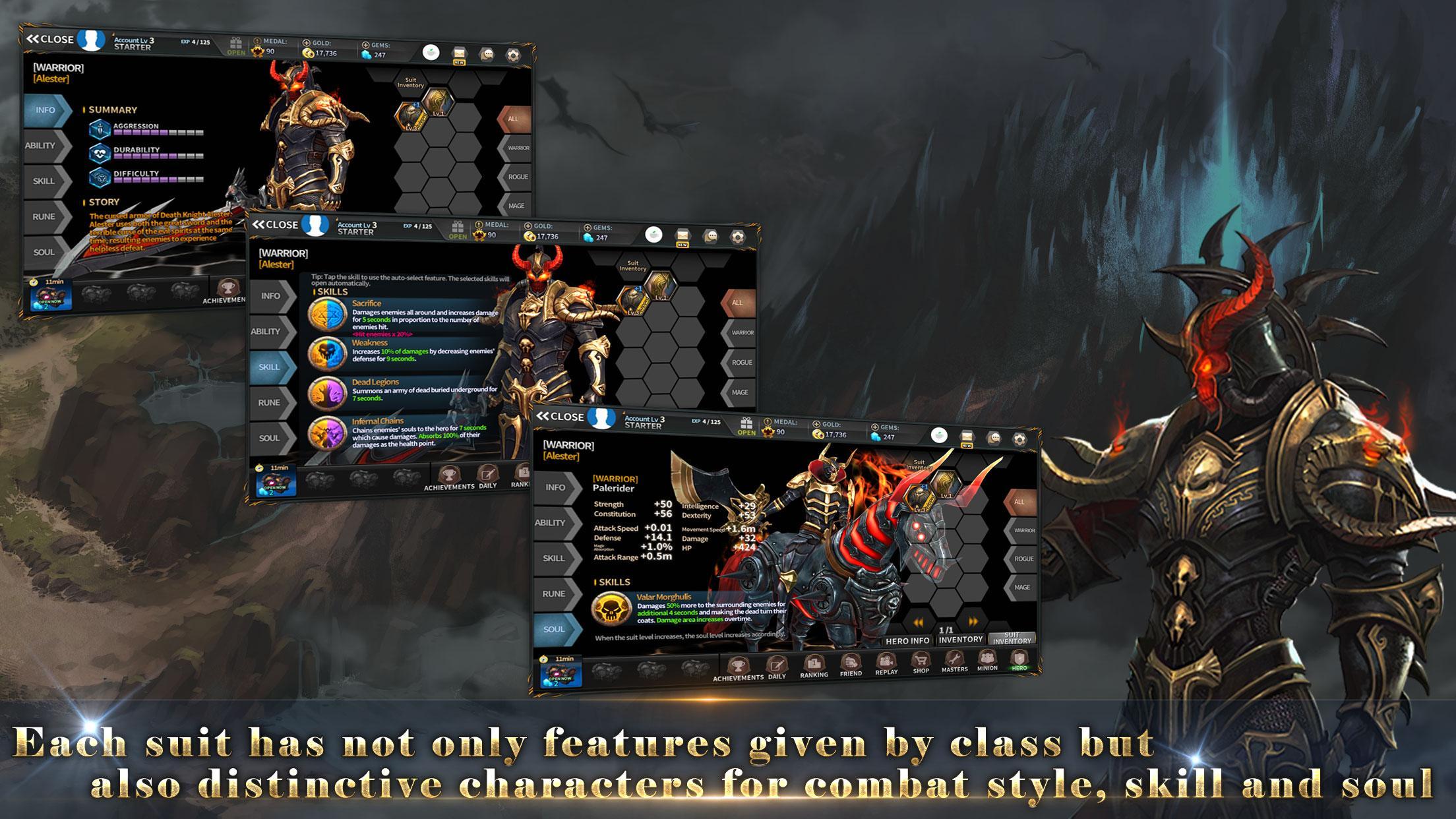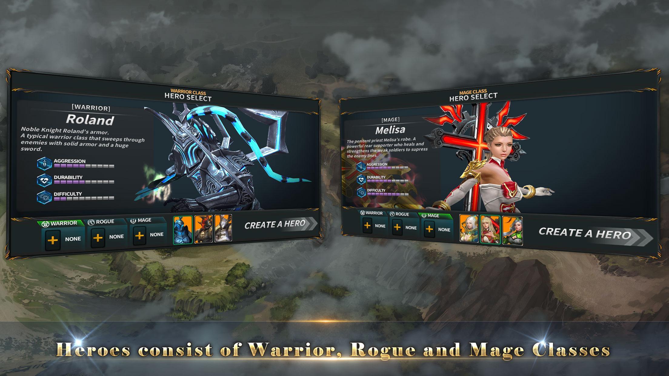 Heroes consist of Warrior, Rogue and Mage classes.