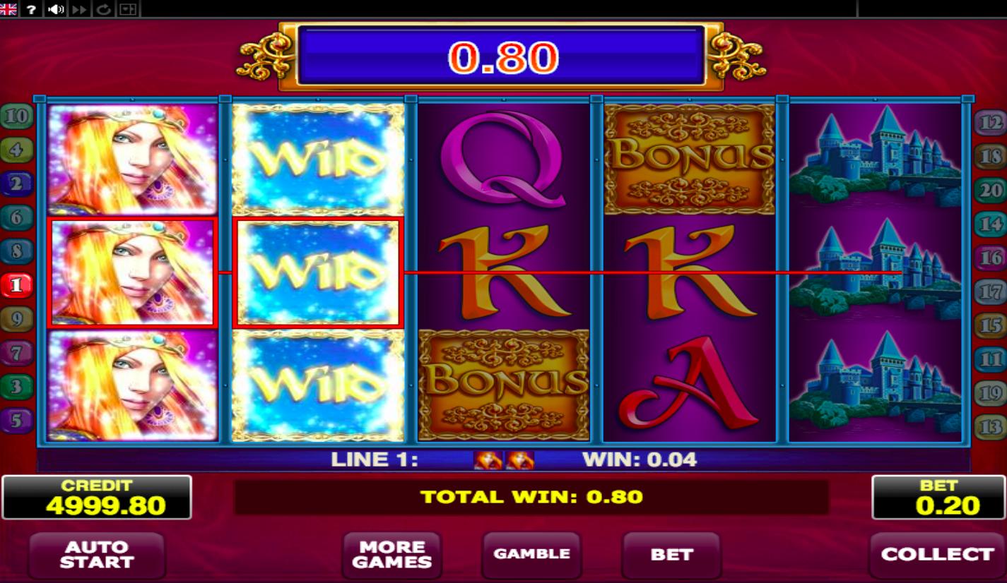 Many children dream of seeing the unicorn in real life after hearing so many fascinating stories about it. Our developers decided to give gamblers a chance to see their childhood dream come true, so the unicorn comes to life in the Royal Unicorn slot. The slot interface is rather simplistic and includes 5 reels with 3 rows each, across which a total of 20 payoff lines can be formed. If you get a row of unicorn icons, you’ll get the highest payoff possible in this slot. In addition, the unicorn also acts as the wild symbol, replacing any missing symbols to form winning combinations. Seven free bonus spins can be obtained by collecting the “BONUS” icon on the 2, 3, and 4 reel in one spin.