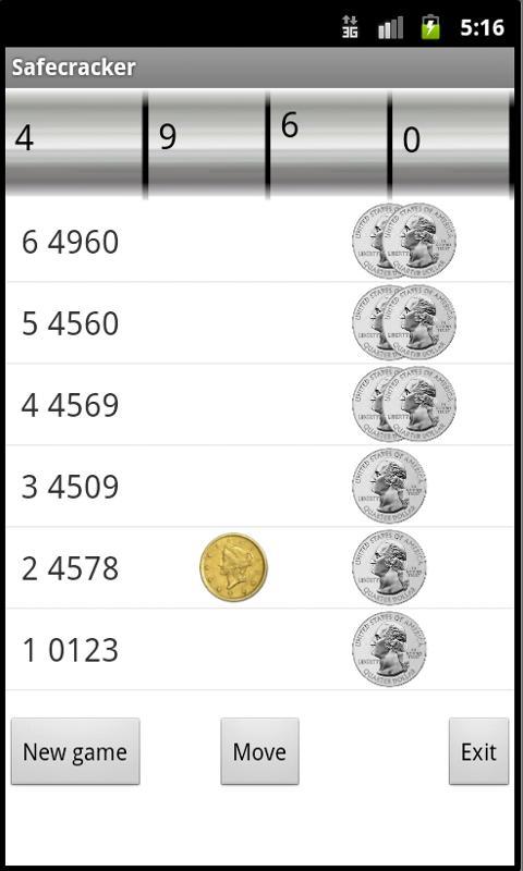 How many digits have you guessed on a different position will show by silver coins.