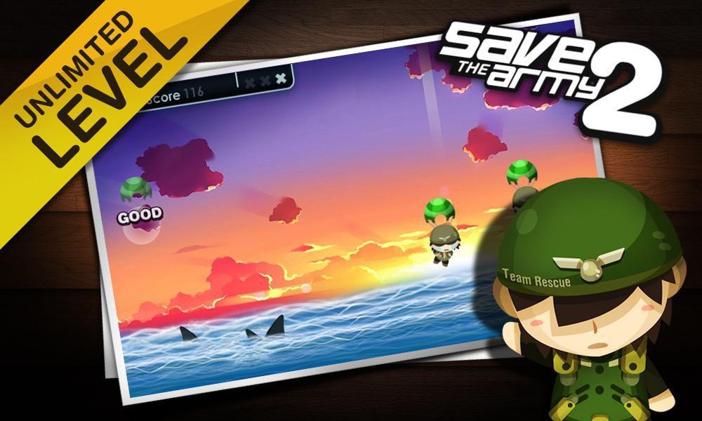 The task of the player is to save these soldiers before falling into the water. The way is to do a tap before they touch the water or sharks. The sooner you save the army, the greater will also score you get.
