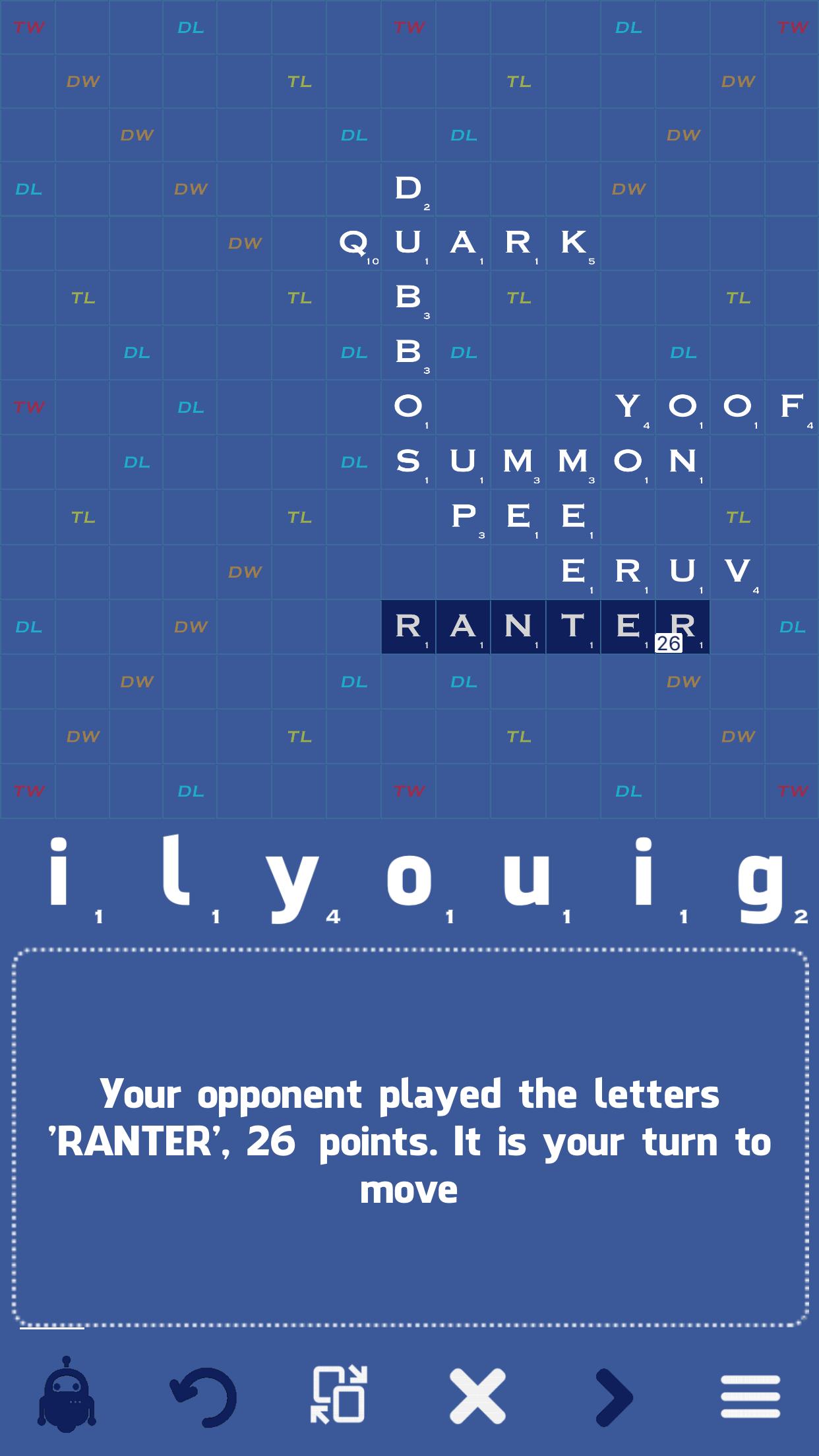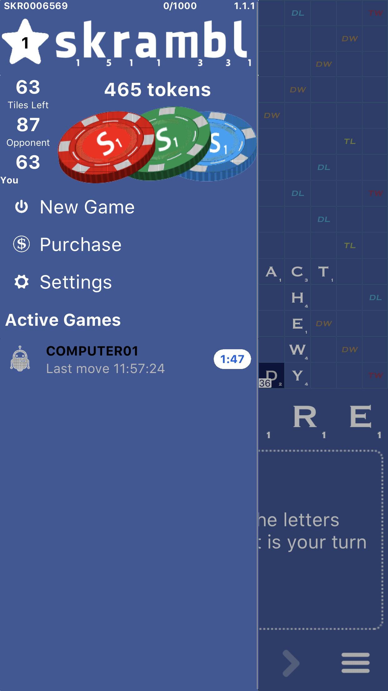 skrambl is a word game similar to Scrabble which can be played with friends or against a computer. It has multiple dictionaries and is available in english, french, spanish, portuguese, italian and german. An internet connection is required in order to play.