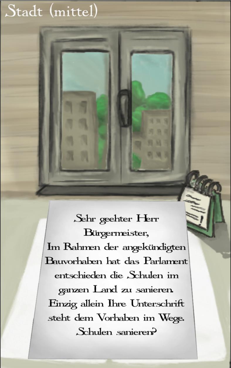 Decisions, you become a mighty metropolis. Every round, you get a new problem. Your decisions affect all five factors from your country: money, population, happiness, environment, and their influence on their country. If one of these factors becomes too low, you die. A game of decisions, politics, strategy, and survival. Prepare your skills as a guide from a city, and swipe go to develop the most powerful country from all time!