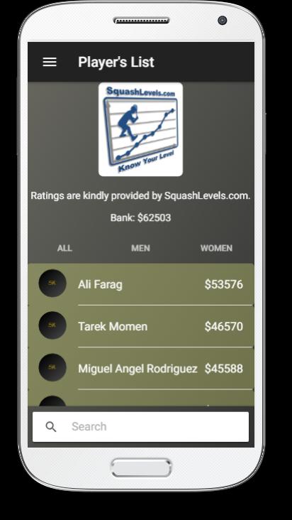Squash Fans! Put down your rackets and pick up this app! Manage a squash fantasy league team - Show your superior knowledge by investing in players coming into form, and selling players as they fall out of form.