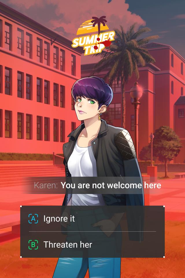 Do you think love can survive even the hardest of situations? Come play an interactive and thrilling story that will change your life forever! Summer Trip is the story of a young teenager who has just moved to San Francisco. With a new city, new friends, and new adventures, you are more than ready for everything! After some quick introductions, you all go to a beach house to spend some summer vacation time together, with parties, music, and good food. What could be better than a peaceful place with friends? But things start getting strange… people disappear and loud noises rock the area. Something is attacking the houses in the neighborhood, and the car keys and phones have disappeared! Things get even worse, and you all start doubting each other’s integrity. So, who will you think is involved? Is it Jonah, a boy who is always in trouble, or Caesar, a popular, sweet guy? Could it be Tina, who loves meditating, or Karen, always angry and possessive with Darren, her quiet boyfriend, or even Christian, a funny guy who’s always scared? To help you out, your sister Lilly will be always by your side. Will you all get out of the house alive? And will you find love amid the chaos? Maybe there’s more to this story than you think you know... Discover all the answers now: download Summer Trip and try to find your own way to survive!