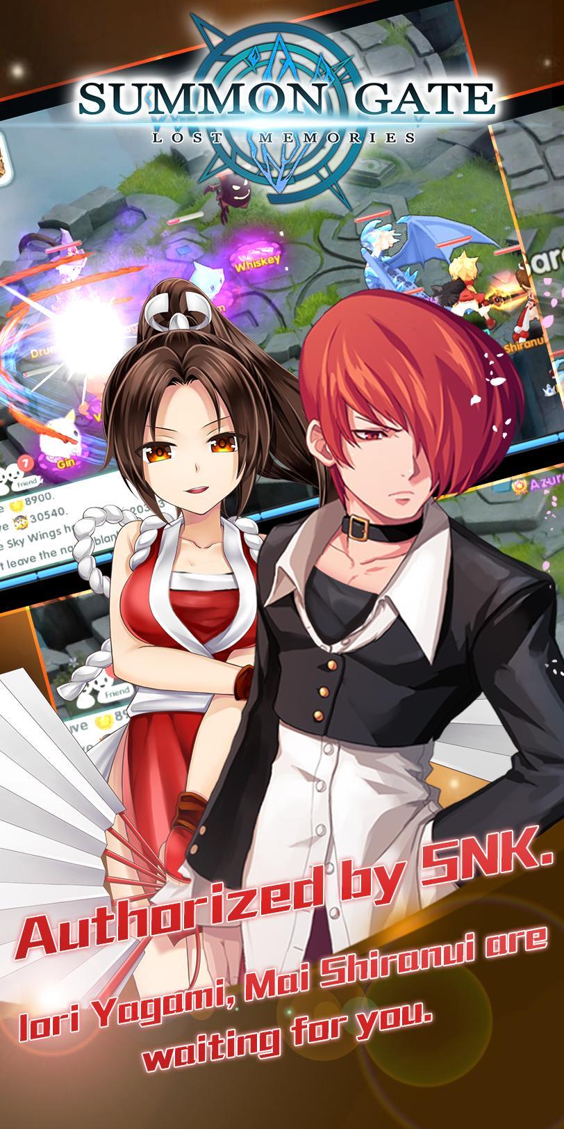 The most popular Japanese-style mobile game--Summon Gate: Lost Memories now is coming! The game is authorized by SNK and Osamu Tezuka. You will meet the classic characters like Iori Yagami, Mai Shiranui, Nakoruru, Haohmaru, etc in game. And the characters are dubbed by famous Japanese CV. Come and have fun in Summon Gate: Lost Memories!