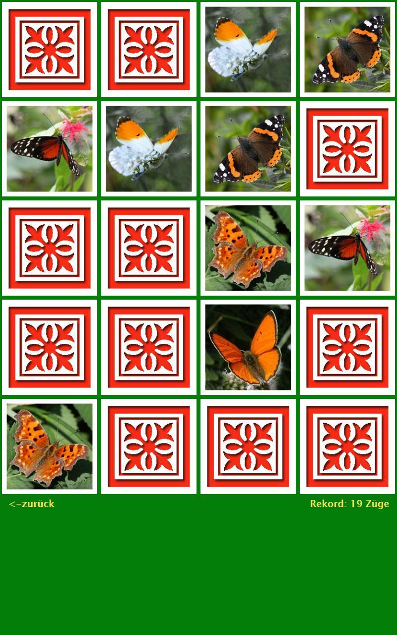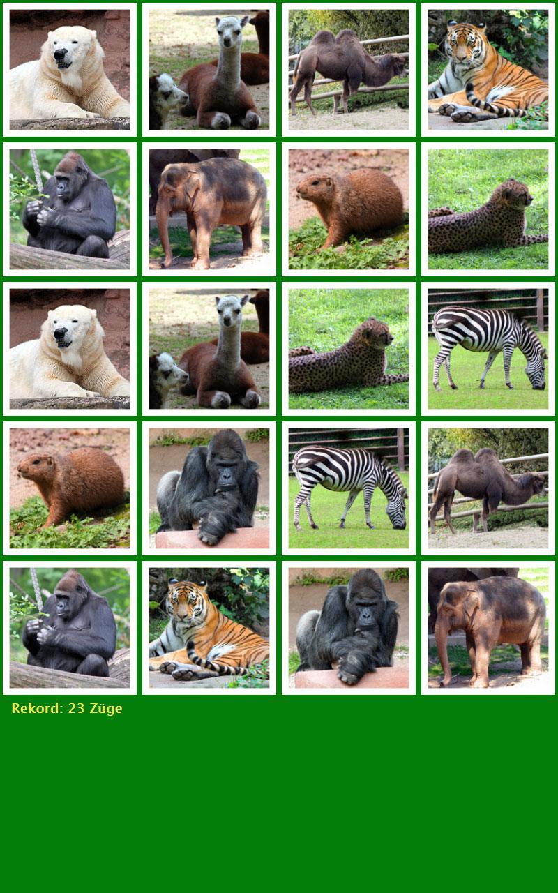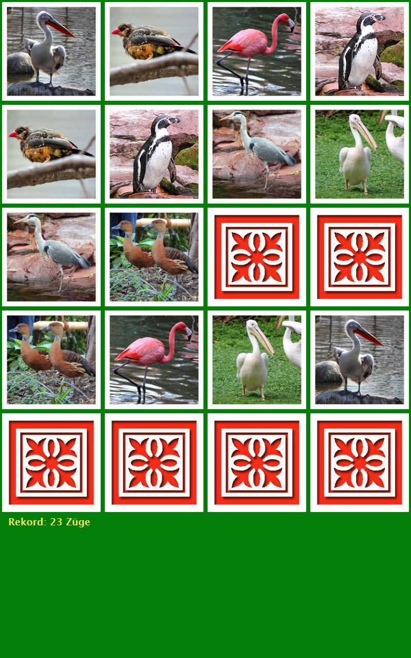 When the game starts, all cards are displayed hidden. This is uncovered by tapping a card. When the second card is identical to the first, both remain uncovered, otherwise both will be reversed. The aim of the game is to find all the pairs of pictures as few as possible.