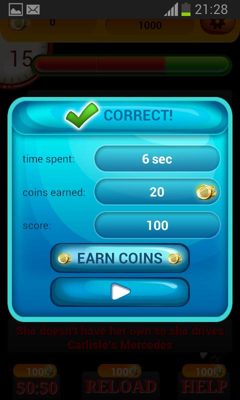For every correct answer you will be rewarded with coins and points