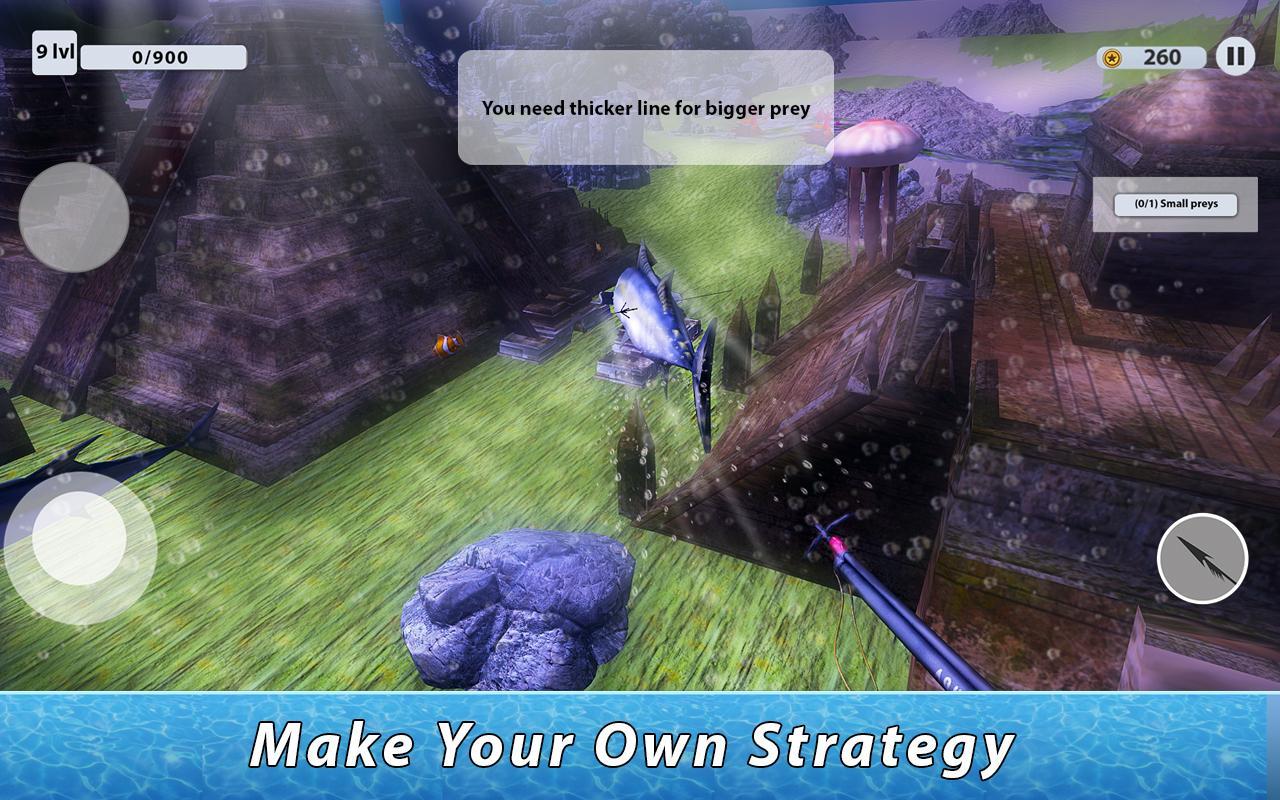 Hunt in simulator is easy - shoot harpoon and pull! Cath small fish and animal species at first - big wish will break bad harpoon tackle. To hunt and catch bigger animals and fish buy better harpoon tackle. Hunt in wild ocean, harpoon animals and fish, complete hunt missions and avoid predator species of the simulator to buy fishing tackle and harpoon in Underwater Harpoon Hunting simulator!