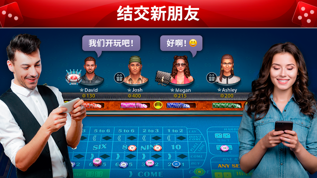 MEET NEW PEOPLE: Connect with casino craps enthusiasts from around the world. Use our in-game chat to make new friends, share craps strategies, or engage in friendly banter. Chat, exchange gifts, and find new friends in our casino community.