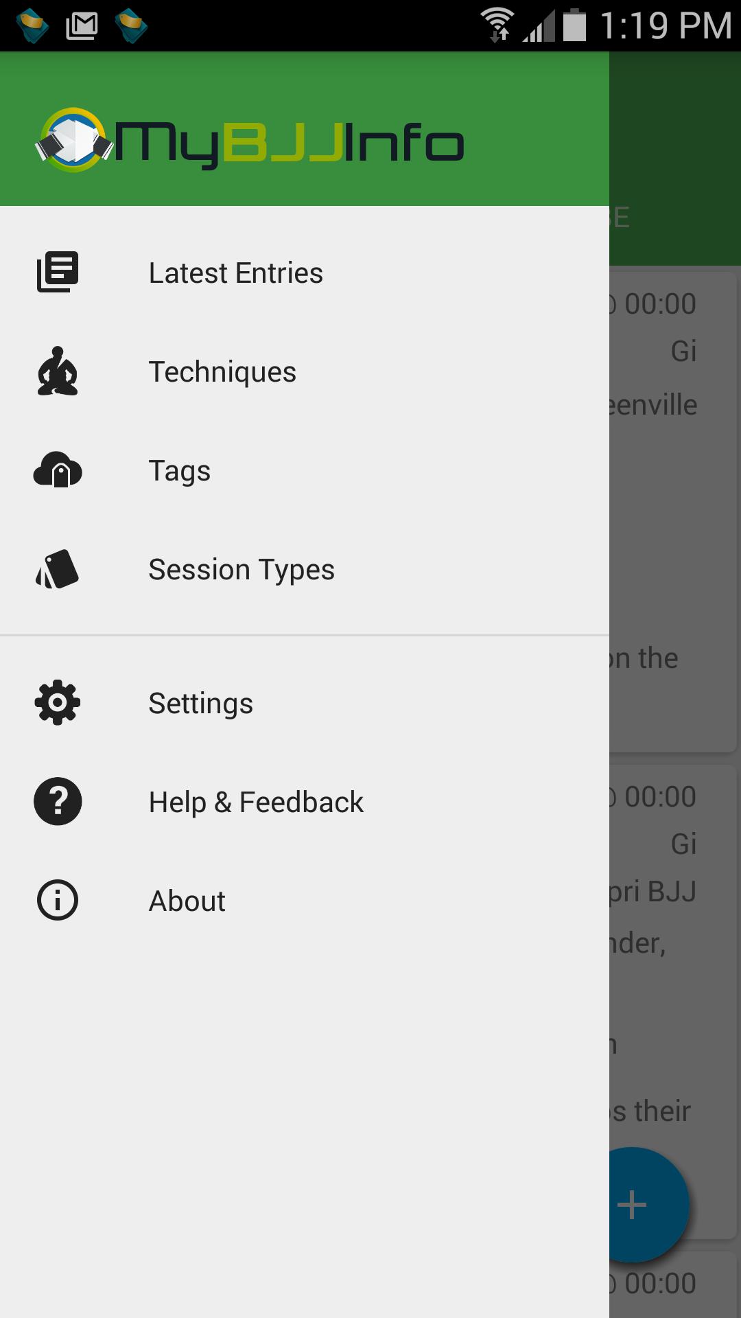 halaman depan aplikasi Perawatan Olahraga dan Kesehatan MyBJJInfo