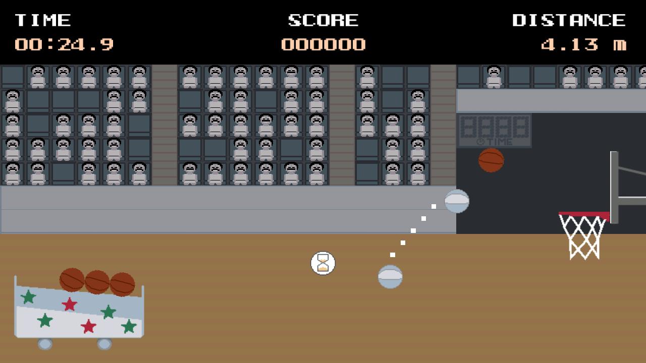 Permainan tembak -menembak bola basket, keranjang skor dan kumpulkan 10 kartu retro.
