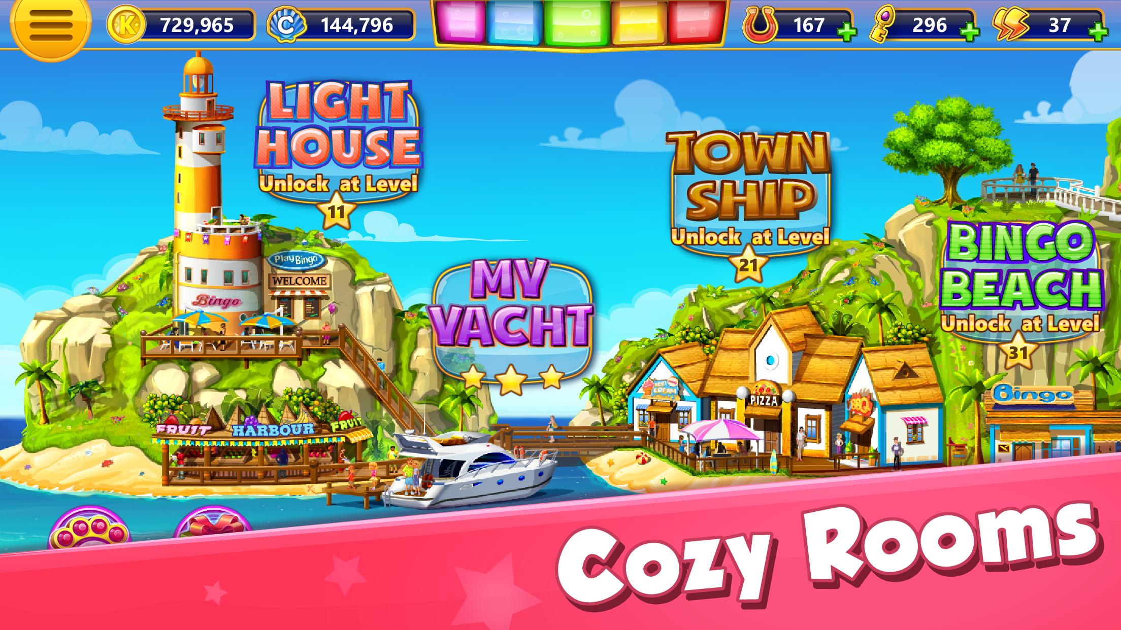 • Berpartisipasi dalam turnamen dan berhadapan dengan pemain di seluruh dunia untuk membuktikan bahwa Anda adalah yang terbaik di Bingo.