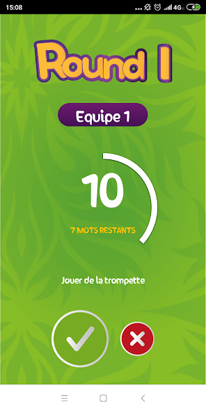 Buat masing -masing 2 hingga 5 tim hingga 5 pemain, pilih jumlah putaran, pelawak, menebak kata dan waktu yang Anda miliki.