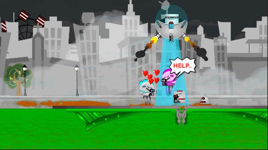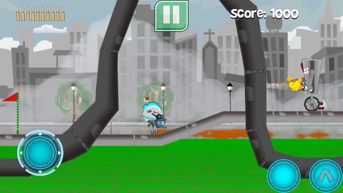 Berjuang melawan robot jahat yang berbeda dan level yang berbeda untuk mencapai ujung-ujung!