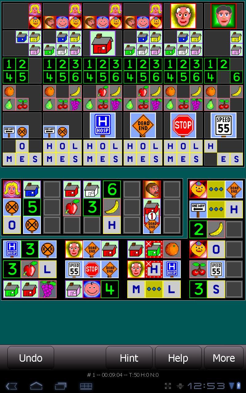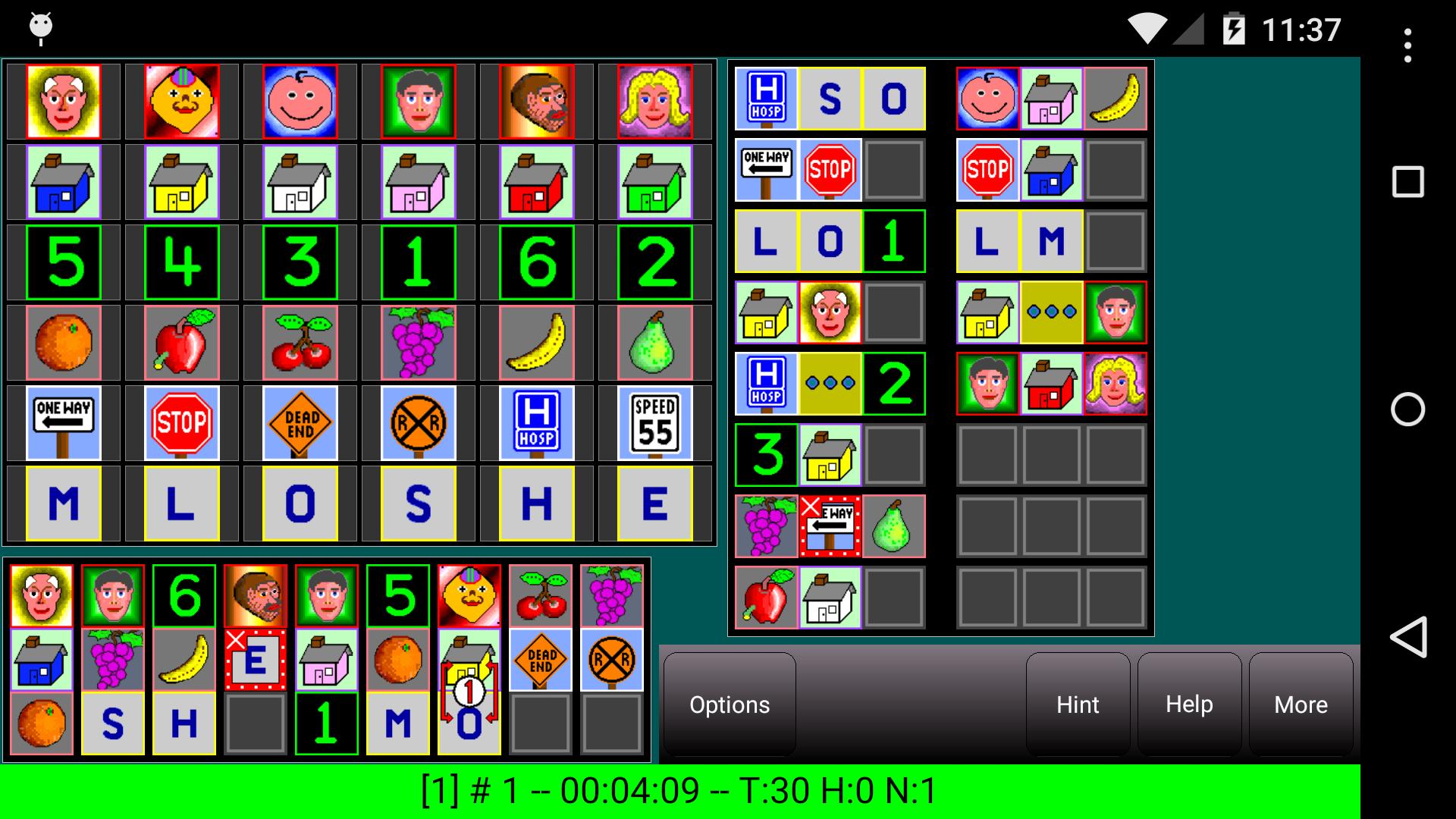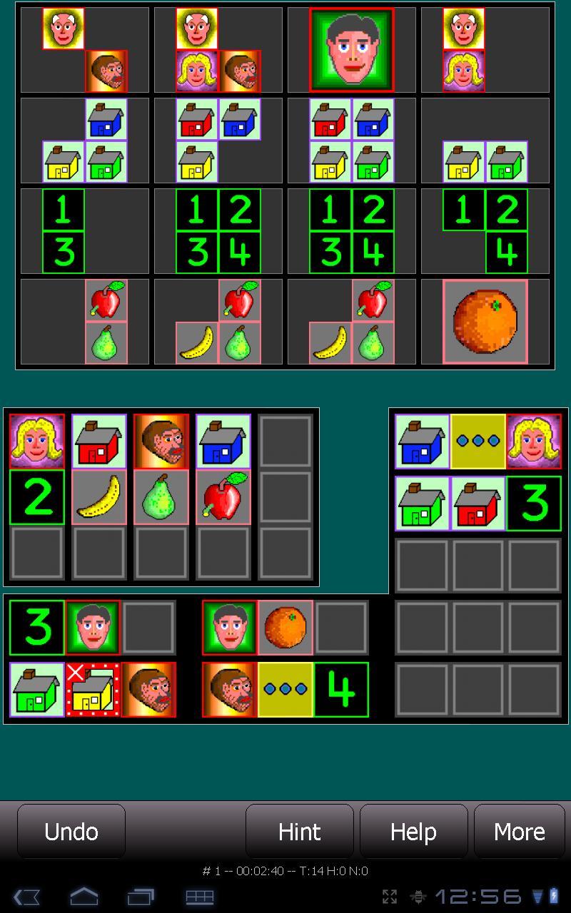 Sherlock adalah versi terkomputerisasi dari teka -teki logika, di mana Anda disajikan dengan serangkaian petunjuk yang membantu Anda menentukan lokasi yang tepat dari semua gambar di papan bermain. Teka -teki semuanya 4x4, 5x5 atau 6x6. Setiap baris papan bermain berisi gambar dari jenis yang sama (wajah, rumah, angka, buah, tanda jalan, surat, dll). Gim ini mengacak lokasi item di setiap baris (tanpa menunjukkan lokasi mereka) dan kemudian memberi Anda satu set petunjuk grafis yang menggambarkan hubungan posisi dari berbagai gambar. Anda menggunakan petunjuk untuk menyimpulkan di mana hal -hal tidak mungkin (dan di mana mereka harus berada) sampai Anda tahu di mana semua gambar berada.