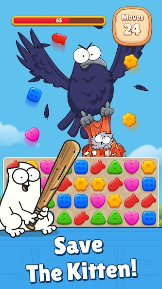 Jadi, tunggu apa lagi? Bergabunglah dengan kucing Simon dan teman-temannya dalam petualangan yang menyenangkan ini melalui pawsome match-3 teka-teki dan area bertema binatang yang lucu!