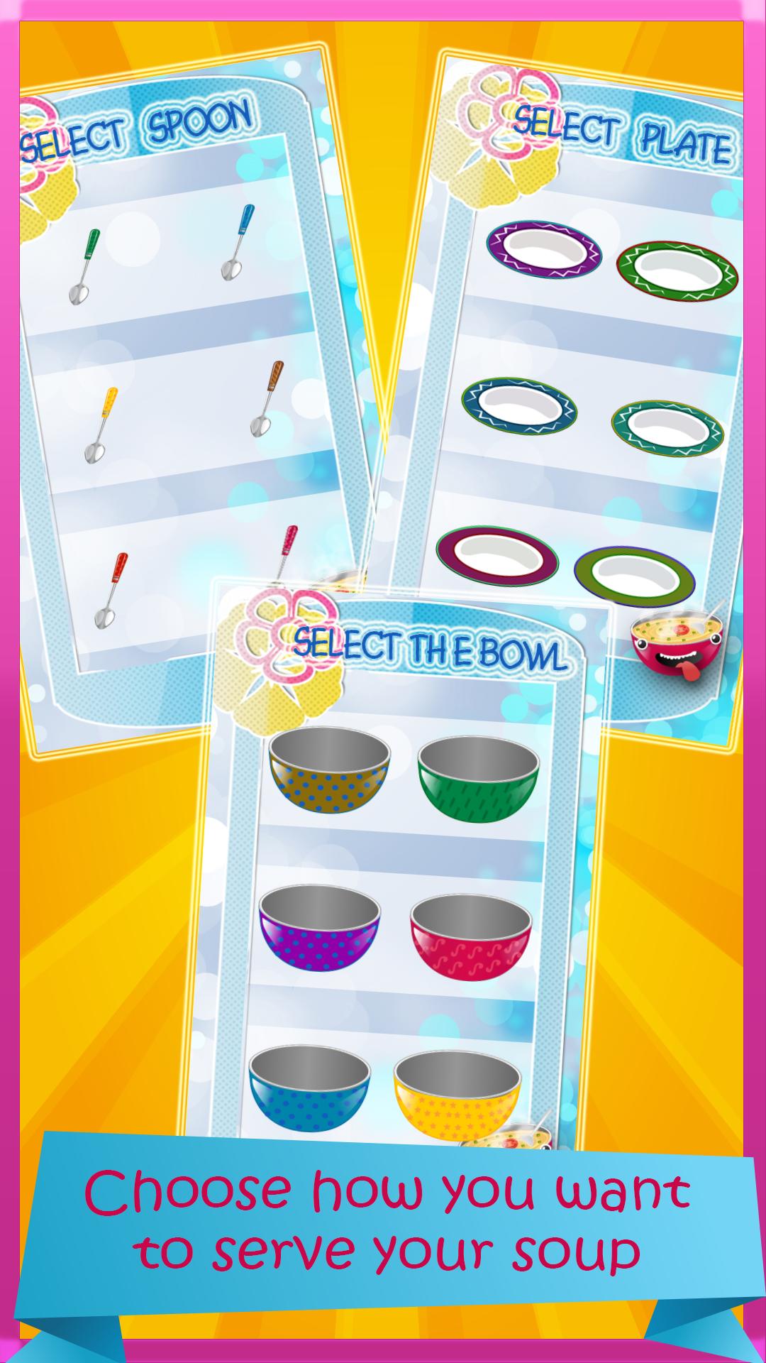 Baik itu kerinduan hari tengah untuk camilan atau kebutuhan utama akan energi setelah episode Sickness, Soup Maker ada di layanan Anda! Apakah Anda orang aneh diet? Ingin kehilangan beberapa pound ekstra gemuk itu? Soup Maker memberi Anda berbagai rasa dan dan pilihan yang sesuai dengan selera Anda dan rapikan pinggang Anda! Puaskan rasa lapar Anda dengan bantuan semangkuk sup yang bergizi dan sehat untuk menempatkan Anda dalam kondisi yang baik. Anda dapat memilih mangkuk favorit Anda, sendok, dan bahkan serbet! Berbagai rasa dan bahan untuk dipilih dari- ayam, jagung, panas & asam, tomat, jamur dan sayuran lainnya- hanya untuk beberapa nama. Ambil beberapa daging untuk mendapatkan rasa ekstra atau hanya menggunakan sayuran organik untuk sup Anda jika Anda menginginkan pengalaman sup yang lebih sehat dan lebih yummier.
