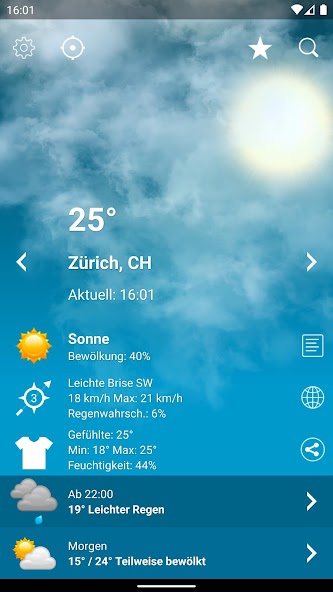スイスと世界中の気象条件を通知するための使いやすいアプリ。