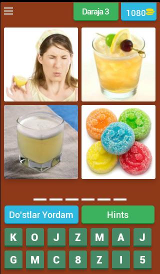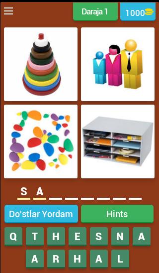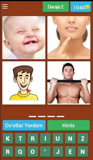各レベルは4つの写真で構成されています。単語は4枚の写真で一般的です。 4つの写真すべてで単語を見つけます。