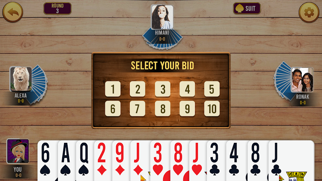 Cardgame Callbreak Multiplayer Roundの勝者は、次のラウンドを開始するためにカードのプレイを投げることができます。 13ラウンドがあり、その後次の取引が開始されます。友達と勝利ゲームを祝い、スコアポイントを共有する