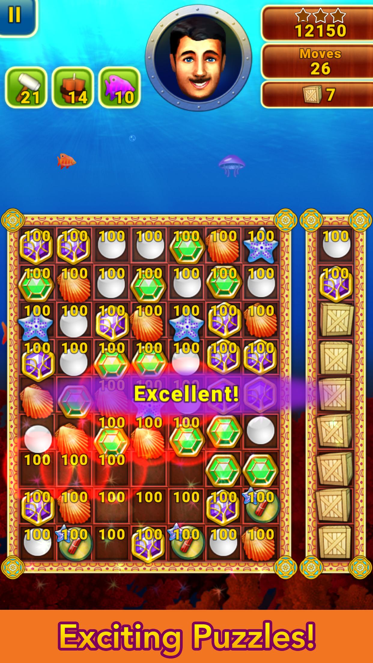 水中マッチ3ゲームであるOceanuxの海の深さを探索してください。