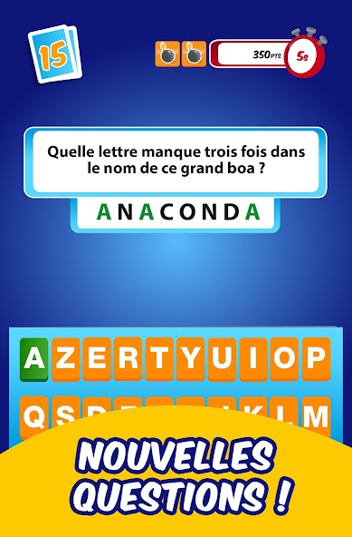 Slamは、単語愛好家、クイズファン、クロスワード愛好家のためのお気に入りのゲームです。地理から数学まで、化学を含むすべてのジャンルで遊んでください...そしてもちろんフランス語!