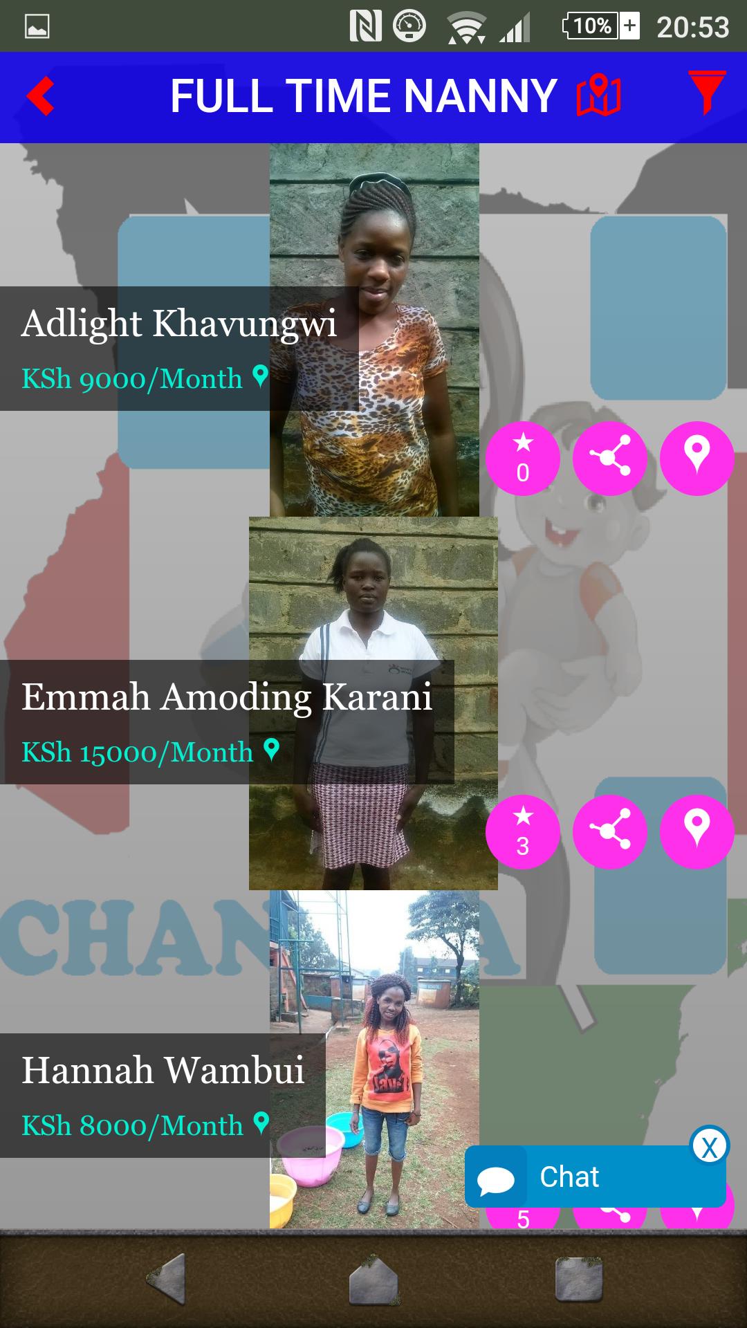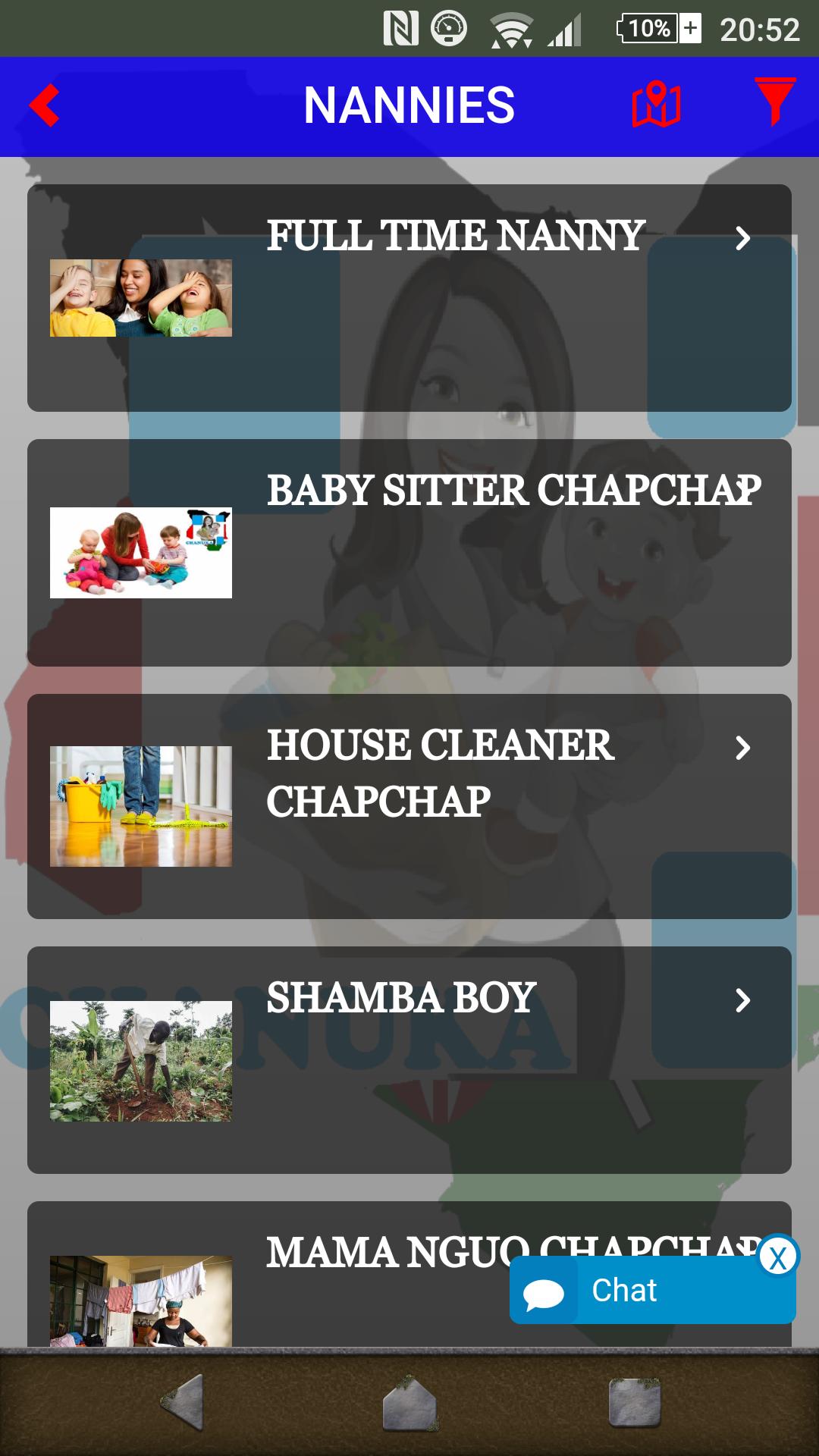 CHANUKA 혁신 혁신을위한 단독 목표로 설립되었습니다. 우리는 CHANUKA 앱을 통해 효율적이고 효과적인 플랫폼을 제공하여 주택 소유자는 풀 타임 Nannies, Baby Sitters, House Cleaners, Shamba Boy, Mama Nguo에서부터 전문가를 찾을 수 있습니다. KSH 100 ~ 1000/=만큼 낮은 경우 선택의 유모를 요청할 수 있습니다.