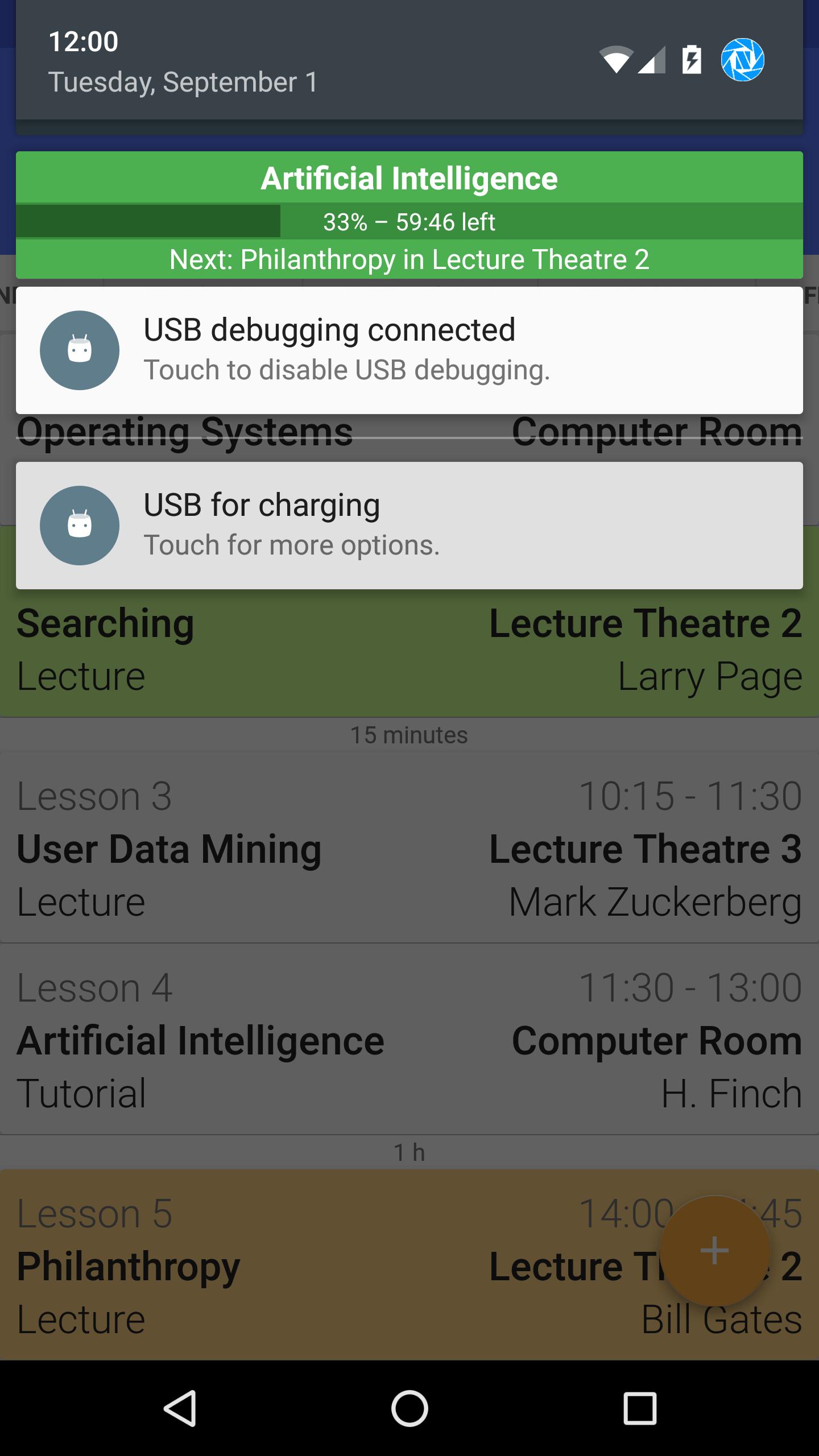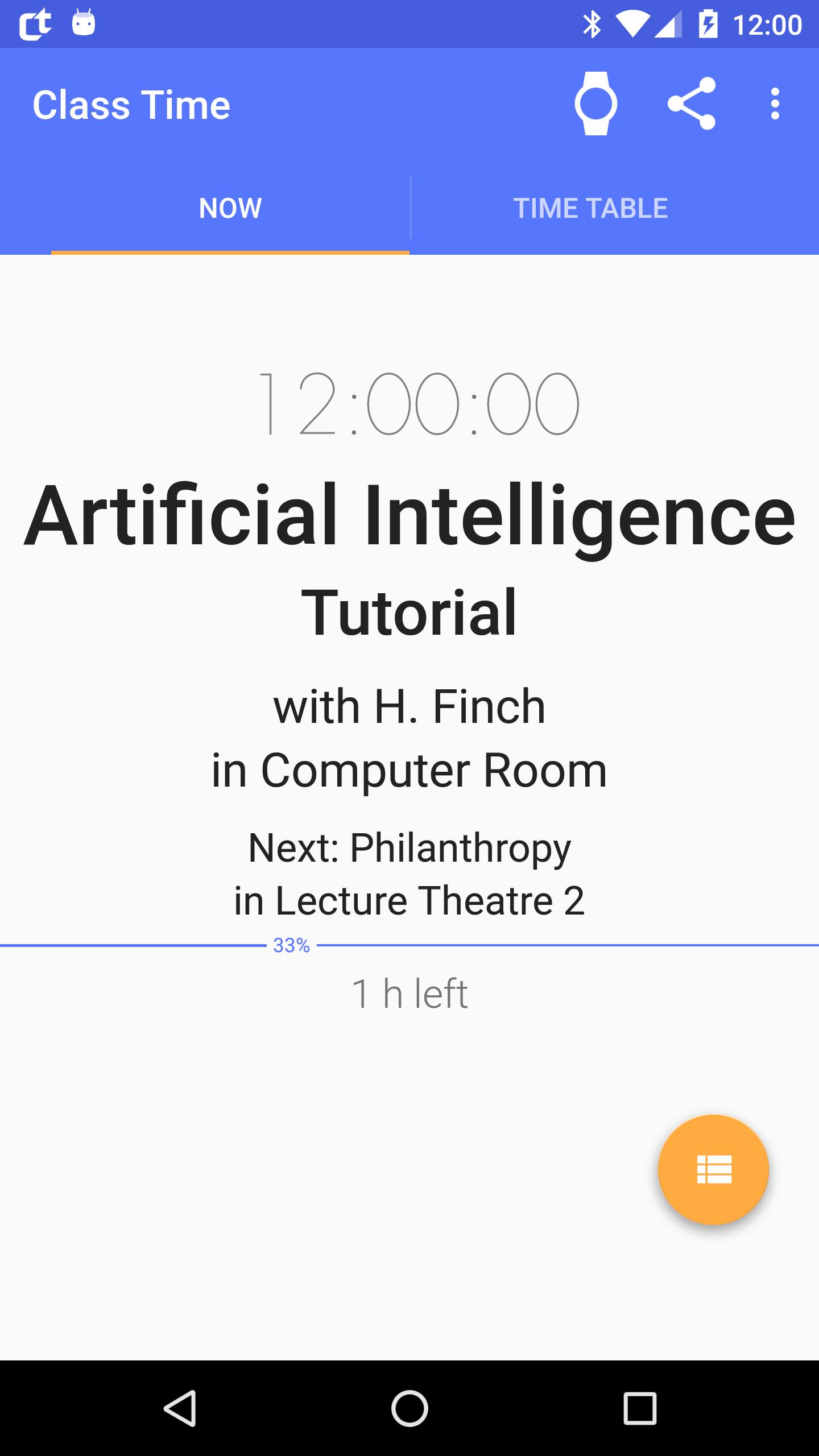 시간 테이블 탭은 매일 수업에 대한 모든 세부 사항이있는 주간 일정을 보여줍니다.