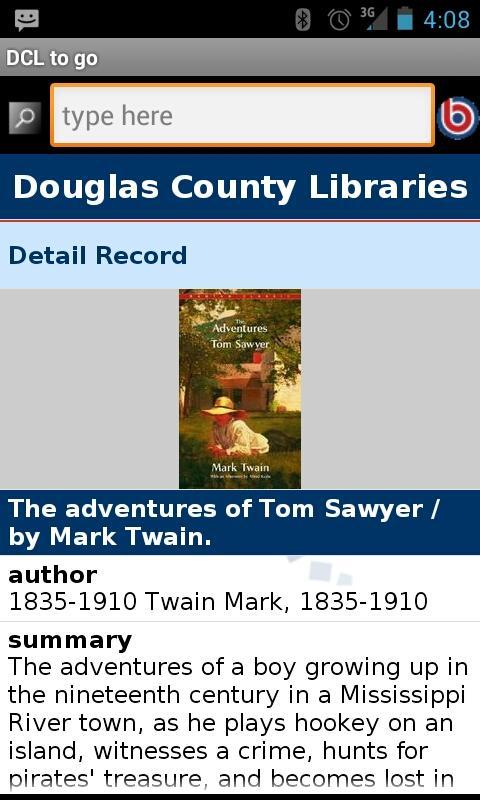 더글러스 카운티 도서관은 이제 당신이 어디에 있든입니다. 내 계정을 사용하여 보유하고 품목을 갱신하고 픽업 준비가 된 것을 확인하십시오. 그리고 카탈로그를 검색하는 것이 훨씬 쉽습니다. "Mark Twain"에 관한 책의 경우 "Ma Twa"를 입력하십시오. 도서관 이벤트를 탐색하고, 도서관 위치를 찾고, 도서관 뉴스를받습니다. Facebook 또는 Twitter에서 우리를 팔로우하십시오.