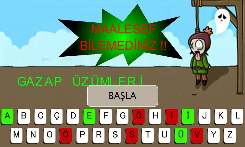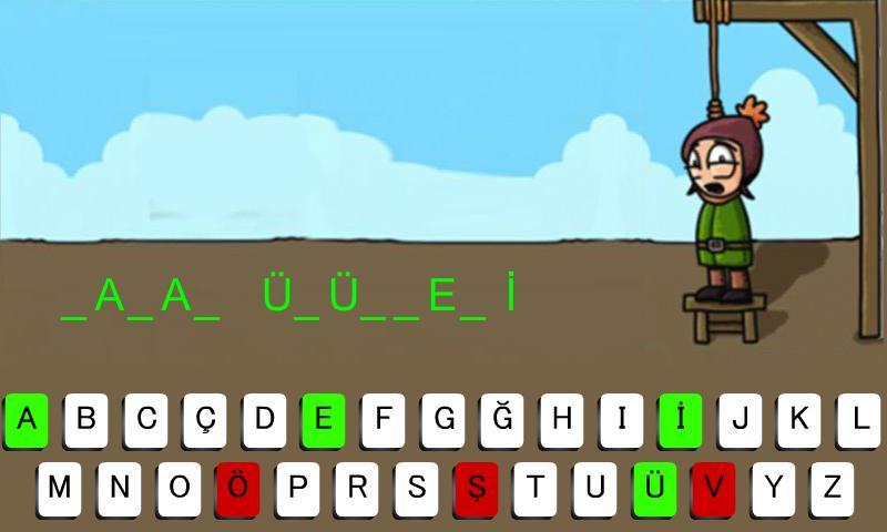 편지가 빨간색이라면, 당신은 단어에서 발견되지 않은 편지를 선택했고, 우리 남자는 천천히 매달릴 것입니다.