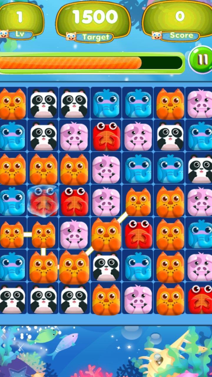 이 라인 퍼즐에서 3 개 이상의 애완 동물 또는 소다를 일치시킵니다.