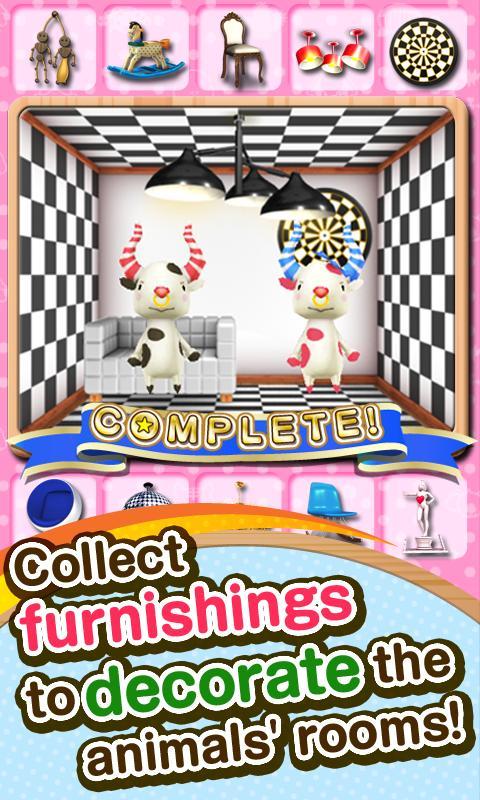 지도의 상자에는 땅을 먹는 사람들이 도난당한 동물의 가구가 들어 있습니다. 동물 방을 조금씩 꾸미기 위해 수집하십시오!