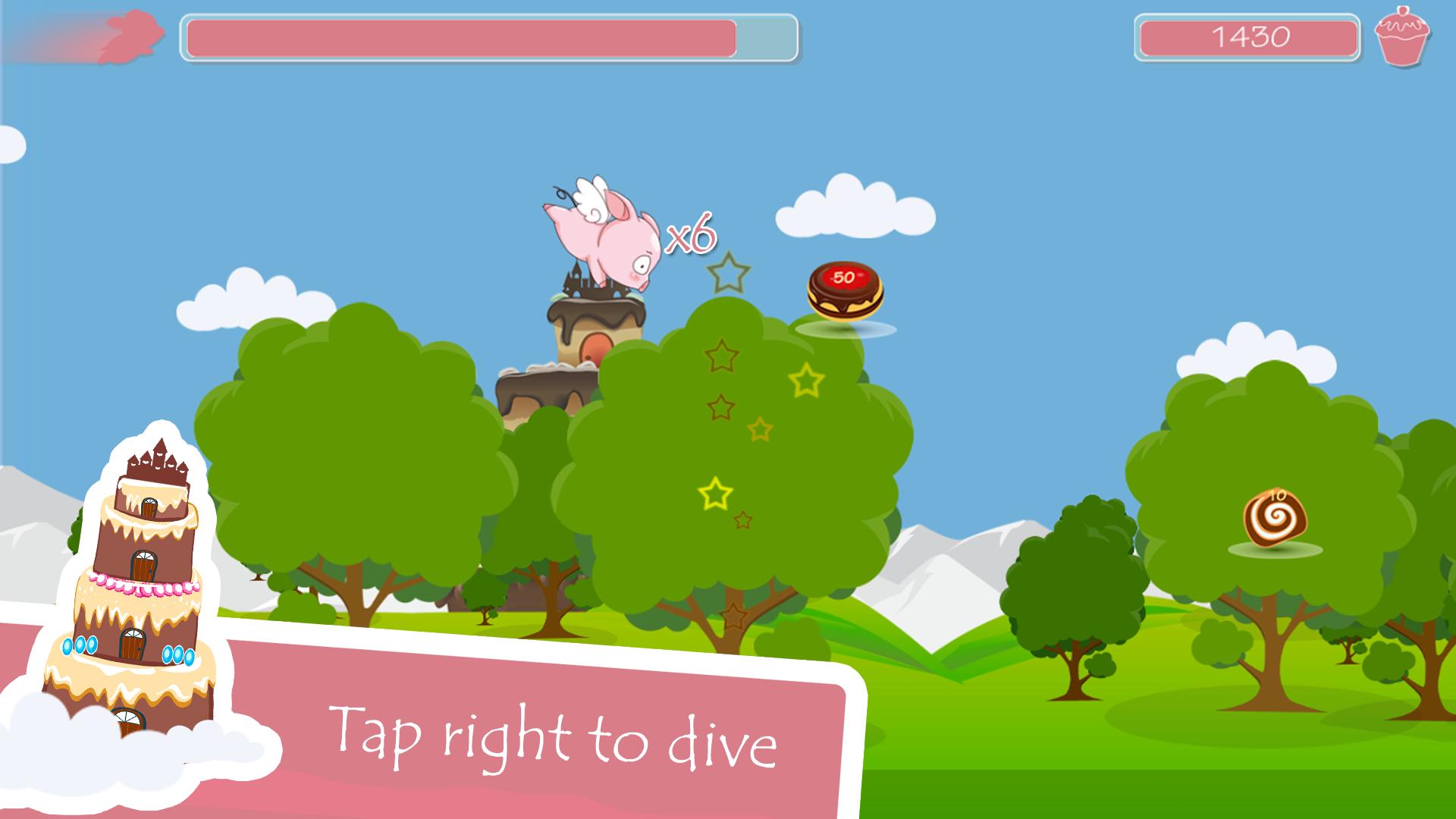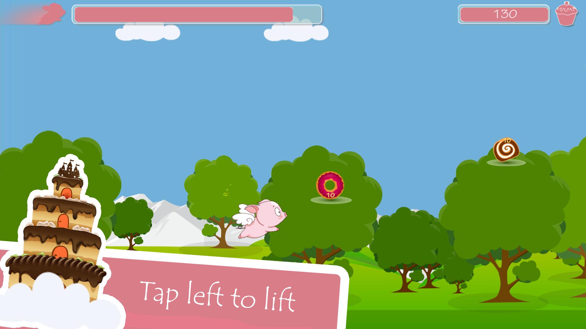 돼지의 꿈은 마침내 사실입니다. 그것은 푸른 하늘에서 날아가 지상의 모든 것을 볼 수있었습니다. 그러나이 꿈이 일찍 끝내고 싶지 않다면 돼지는이 여행에서 많은 케이크를 모으려고 노력해야합니다.