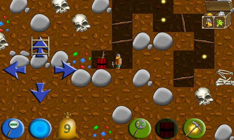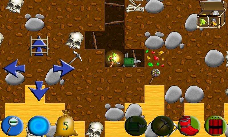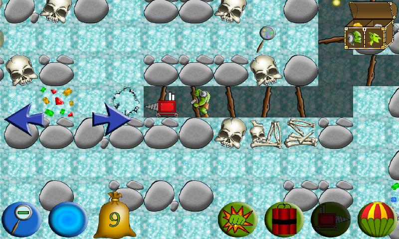 • 다이너마이트, 파기 기계, 보석 로케이터, 물약, 낙하산, 스피드 부스터 등을 사용하십시오!