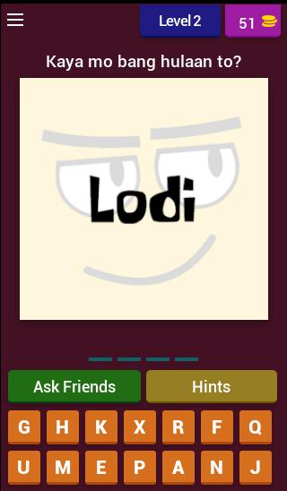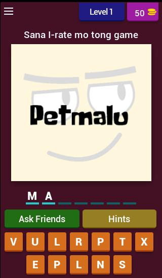Petmalu, Lodi 및 기타. 그것이 PETMALU na Pinoy Slangs 에서 여기에서 볼 수있는 것입니다. 게임에서 단어가 무엇을 의미하는지 추측하십시오. 반대 또는 의미가있을 수 있습니다. 재미 있고 놀기 쉽습니다. 그것을 시도하고 모든 레벨을 완료 할 수 있는지 확인하십시오.