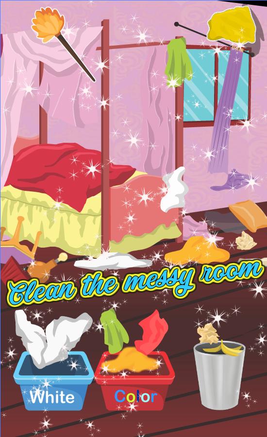 첫 번째 단계는 드레스가 어디에나 있고, 쓰레기가 바닥에 있고, 책은 다른 곳에 있어야하고 부러진 물건을 고정 해야하는 매우 지저분한 방을 청소할 수 있습니다. 따라서이 지저분한 방을 청소하기 전에해야 할 일이 많이 있습니다! 더러운 벽과 창문을 청소하기 전에 각 물체를 올바른 장소에 놓거나 부러진 물건을 수리하십시오. 진공 청소기를 사용하고 바닥이 완벽 해 보이도록하십시오! 공주실 청소 게임 의이 단계가 끝나면 빛나는 방이 보입니다!