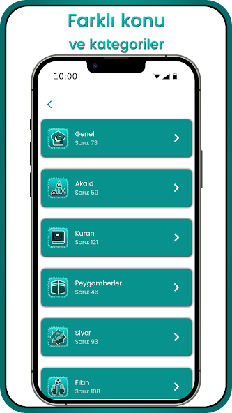 이슬람 퀴즈 게임에는 Aqaid, Sira, Quran, Fiqh, Prophet 및 General과 관련된 카테고리가 있습니다.