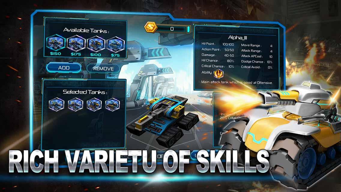 시작 전투 전에 원하는 탱크를 구매하고, 돈으로 업그레이드하고, 각 탱크의 정보를 확인한 다음 전장에 수동으로 배치 할 수 있습니다.