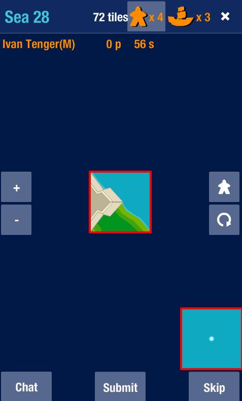 오렌지 원을 클릭하여 meeple 또는 ship을 배치하십시오. 아직 점령되지 않은 성채/땅/바다에만 배치 할 수 있습니다.