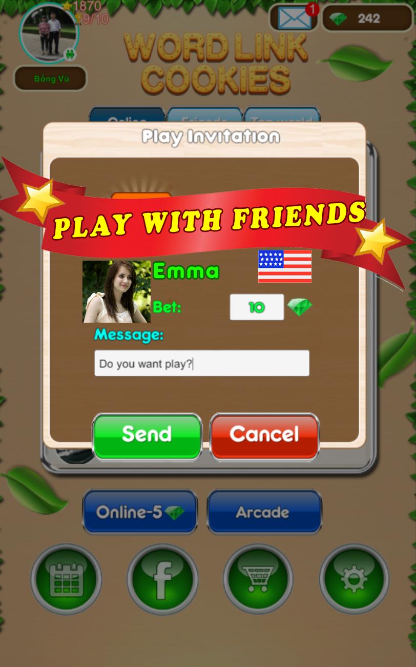 Word Link Cookies : 친구와의 Word Connect-Word 게임은 최고의 단어 게임입니다. 혼자 또는 친구들과 놀 수 있습니다. 소년은 매우 배가 고파서 문자를 연결하여 단어를 만들어 쿠키를 만들도록 도울 수 있습니다.