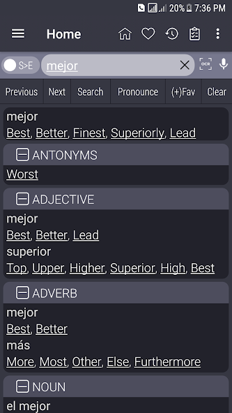 • Pesquisa bidirecional: alterne perfeitamente entre o espanhol para o inglês e o inglês e o espanhol.