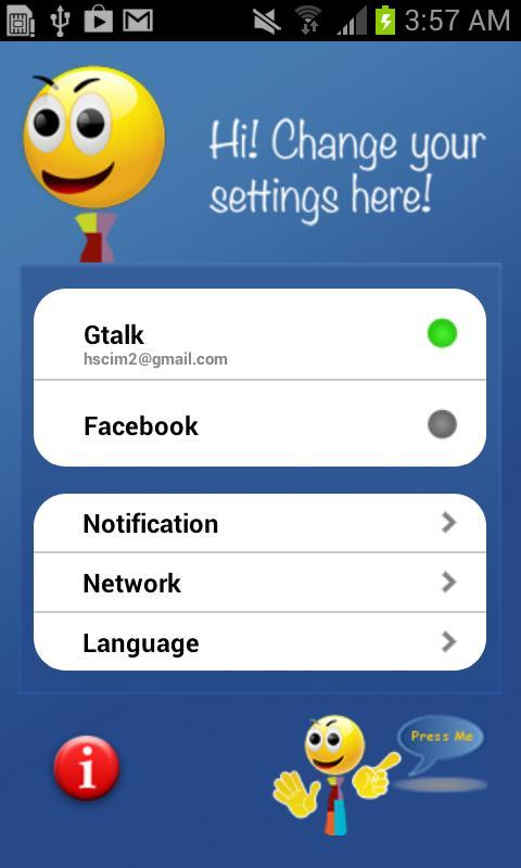 Chat: O aplicativo possui um back -end bem integrado com o Facebook e o Gmail. Portanto, permite que você converse com todos os seus contatos do Facebook e Gmail. Ele fornece uma visão consolidada de seus contatos e também oferece opções para segregar e categorizá -las. Ele fornece as informações de presença quando um usuário está online ou offline e também permite que um usuário em particular defina seu estado de presença.