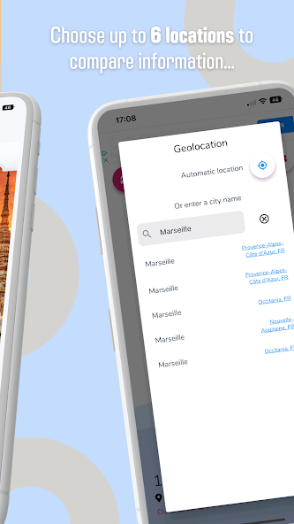 Use a geolocalização automática para obter uma temperatura do ar ao ar livre altamente precisa da sua localização atual, onde quer que esteja. Se você não deseja ativar a geolocalização, também pode entrar manualmente na cidade cuja temperatura externa você deseja conhecer.