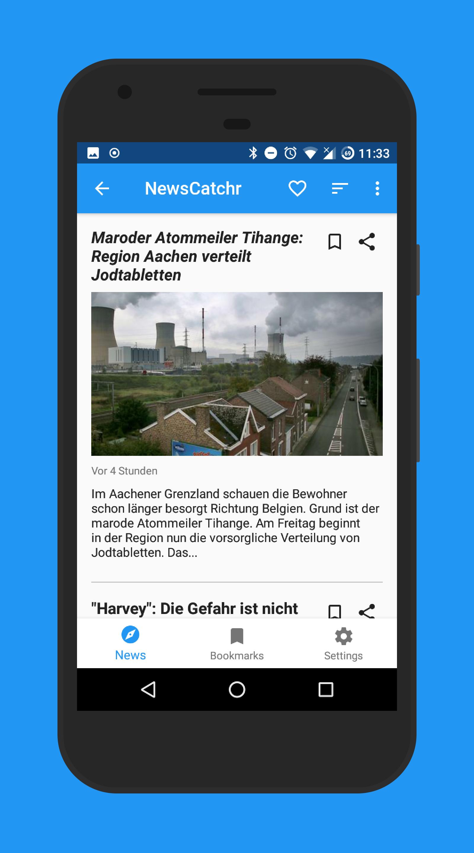 NewsCatchr é um aplicativo, que tenta melhorar o mundo, permitindo o acesso a notícias para todos. O aplicativo está disponível para o Android 4.2+ e muito pequeno e amigável para recursos. Também é completamente aberto, para que o código possa ser verificado por todos.