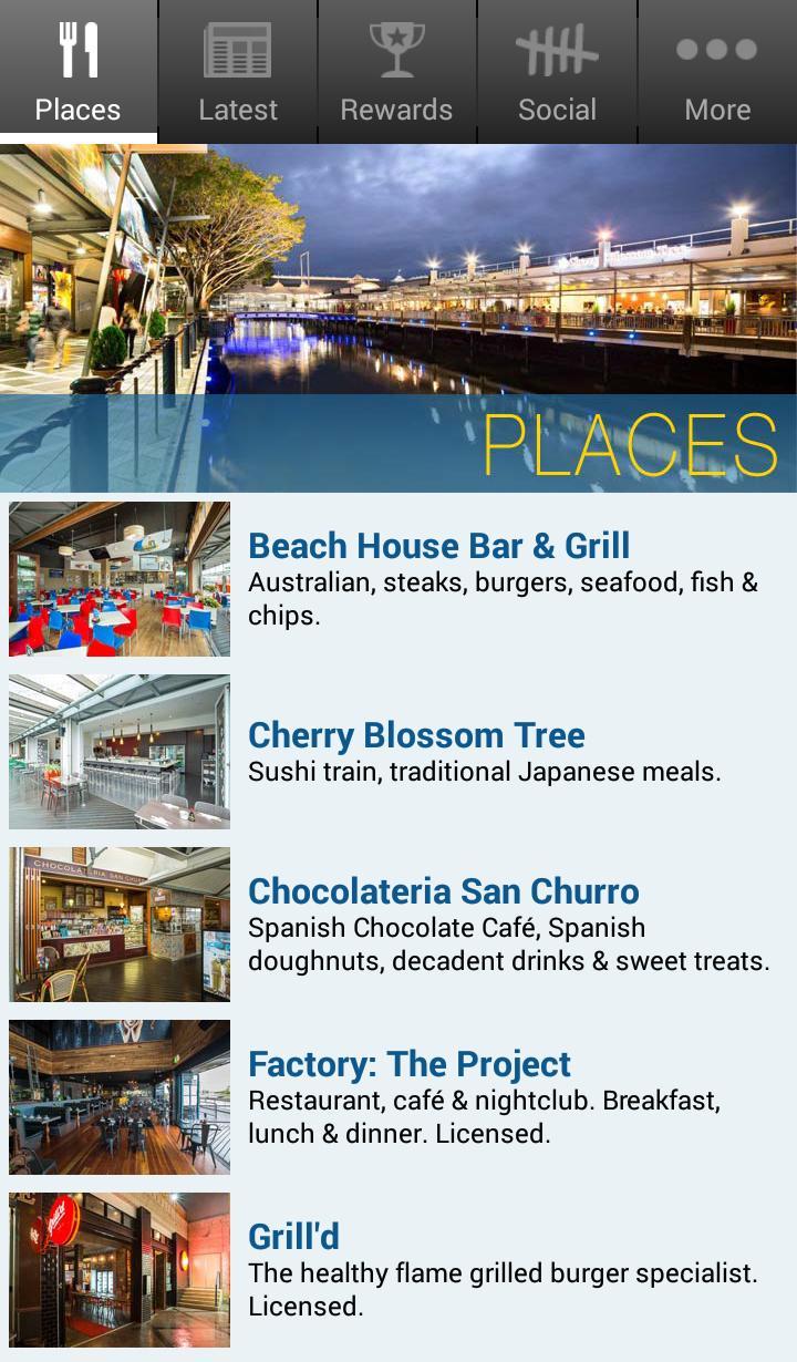 Os recursos do aplicativo Sunshine Plaza Riverwalk Rewards