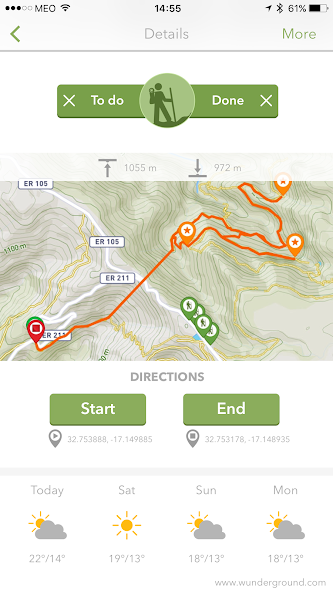 • Obtenha informações em tempo real sobre o local da caminhada: clima e webcam