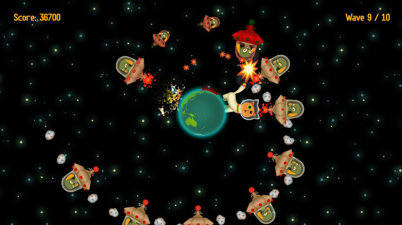 A era espacial está em plena floração, mas a Terra não tem defesa contra grandes asteróides do espaço sideral! No meio do pânico, é decidido que um gato terá que fazer como defesa. O gato bebe uma poção, tornando -o superbig e assume a valente busca de defender a Terra dos asteróides e o culpado por trás de tudo, cão espacial!